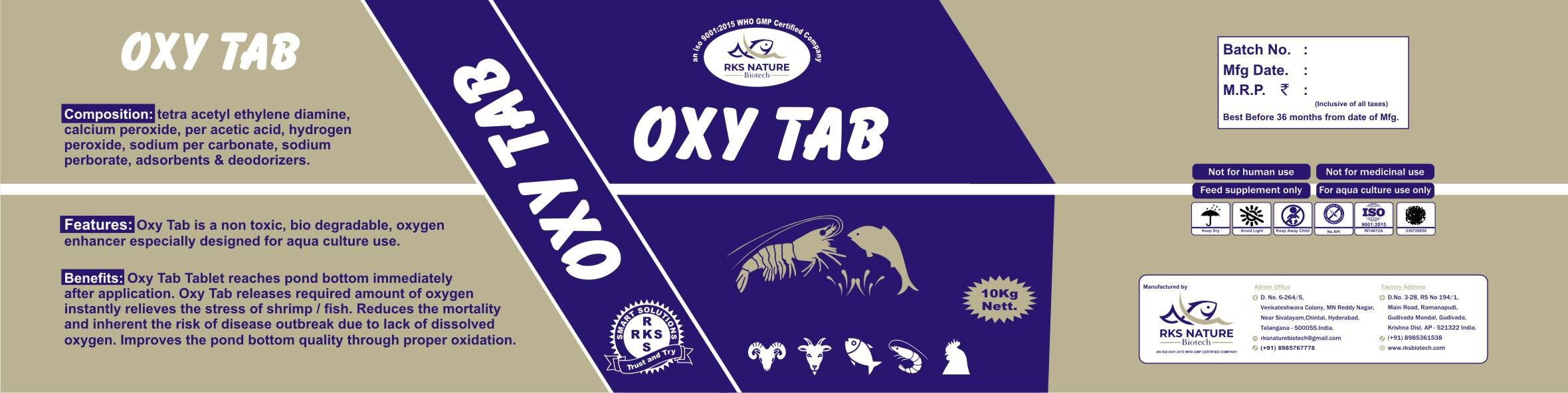 Oxy tab is a non toxic, bio degradable, oxygen enhancer especially designed for aqua culture use. Oxy tab reaches pond bottom immediately after application. Oxy tab releases required amount of oxygen instantly relieves the stress of shrimp/ fish. Reduces the mortality and inherent the risk of disease outbreak due to lack of dissolved oxygen. Improves the pond bottom quality through proper oxidation of sediment.