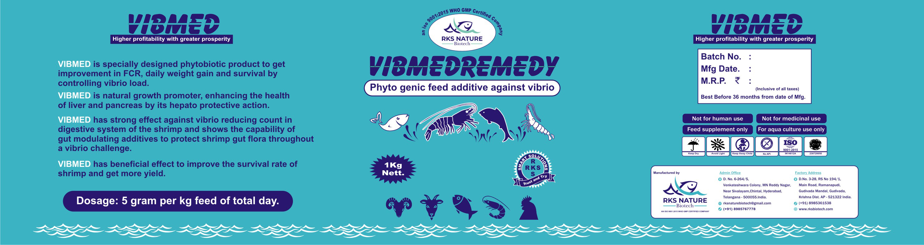 Vibmed is specially designed phytobiotic product to get improvement in FCR, daily weight gain and survival by controlling vibrio load.